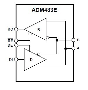 ADM483EAN absolute maximum ratings: (1)VCC: +7 V; (2)Inputs Driver Input (DI): –0.5 V to VCC + 0.5 V; Control Inputs (DE, RE): –0.5 V to VCC + 0.5 V; Receiver Inputs (A, B): –14 V to +14 V; (3)Outputs Driver Outputs: –12.5 V to +12.5 V; Receiver Output: –0.5 V to VCC +0.5 V; (4)ESD Rating: Air (Human Body Model) (A, B Pins): ±15 kV; (5)ESD Rating: Contact (Human Body Model)(A, B Pins): ±8 kV; (6)Power Dissipation 8-Pin DIP: 727 mW; (7)Power Dissipation 8-Pin SOIC: 470 mW.